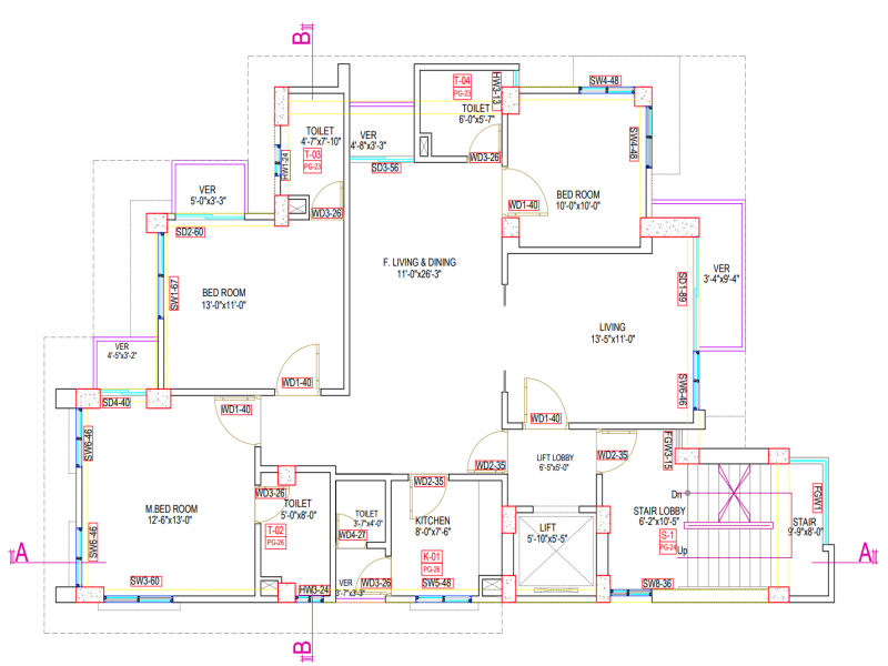 3 Bedroom, 3 Bathroom, Kitchen, Dinning and Leaving, Servant Room and Toilet, G+8, Block F |